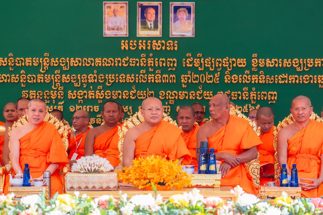 (ភ្នំពេញ)៖ សម្ដេចព្រះពុទ្ធជ័យមុនី បណ្ឌិត ឃឹម សន សម្ដេចព្រះសង្ឃនាយករងទី៣ គណៈមហានិកាយ នៃព្រះរាជាណាចក្រកម្ពុជា និងជាព្រះមេគណរាជធានីភ្នំពេញ រសៀលថ្ងៃទី១៥ ខែមករា ឆ្នាំ២០២៦នេះ បាននិមន្តជាព្រះអធិបតីដ៏ខ្ពង់ខ្ពស់ក្នុងពិធីសង្ឃសន្និបាតមន្ត្រីសង្ឃសាលាគណរាជធានីភ្នំពេញ ដើម្បីផ្សព្វផ្សាយខ្លឹមសារអនុសំវច្ឆរមហាសន្និបាតមន្ត្រីសង្ឃទូទាំងប្រទេសលើកទី៣៣ ឆ្នាំ២០២៥ និងលើកទិសដៅការងារឆ្នាំ២០២៦ ដែលបានប្រព្រឹត្តទៅនៅសាលាអនុគណខណ្ឌមានជ័យ។