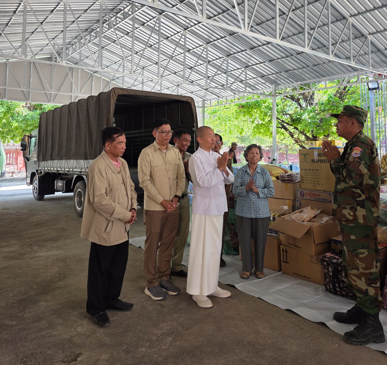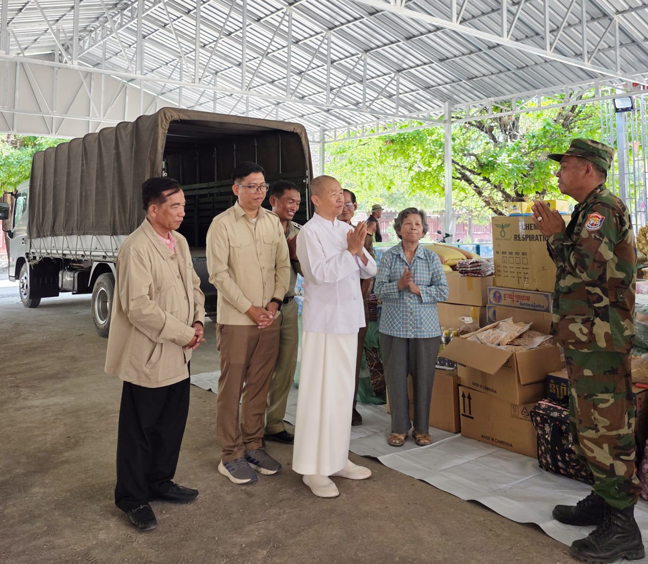 ជាមួយគ្នានេះផងដែរ លោក វរសេនីយត្រី ប៉ែន សុឃឿន ជាតំណាងដ៏ខ្ពង់ខ្ពស់ ឯកឧត្តម ឧត្តសេនីយ៍ត្រី កែវ សេងលន មេបញ្ជាការកងពលតូចថ្មើរជើងលេខ ៥៣ បានថ្លែងអរគុណយ៉ាងជ្រាលជ្រៅ ចំពោះអ្នកឧកញ៉ាអគ្គ និងពុទ្ធបរិស័ទ ព្រមទាំងសប្បុរសជនទាំងអស់ ដែលបានចូលរួមផ្តល់ថវិកាក៏ដូចជាសម្ភារនានា សម្រាប់កងទ័ពយើង ។ តាមរយៈអំណោយទាំងនេះ យើងខ្ញុំនឹងបញ្ចូនទៅខាងកងទ័ពឱ្យបានលឿនបំផុតតាមតម្រូវការចាំបាច់សម្រាប់កងទ័ពយើង ។
