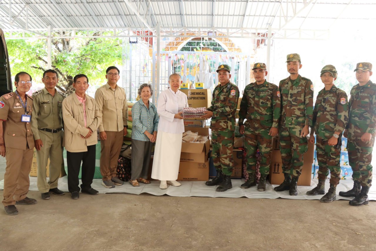 (បាត់ដំបង)៖ តាមរយៈសកម្មភាពដ៏វិសេសវិសាល អ្នកឧកញ៉ា អគ្គមហាឧបាសិកាធម្មបណ្ឌិតមហាសទ្ធាបុញាភិរ័ក្ខសិរីសីលាភិរ័តព្រឹទ្ធាចារិយានី ញុឹក ប៊ុនថា ស្ថាបនិកមជ្ឈមណ្ឌលវប្បធម៌ ព្រះពុទ្ធសាសនាកម្ពុជា (ម.វ.ព.ក) បាននាំយកអំណោយ ជូនដល់វីរកងទ័ពនៃកងពលលេខ ៥៣ យោធភូមិភាគទី ៥ នៅភ្នំសំពៅ ក្នុងស្រុកបាណន់ ខេត្តបាត់ដំបង កាលពីថ្ងៃទី ១២ ខែមករា ឆ្នាំ ២០២៦ មកនេះ។