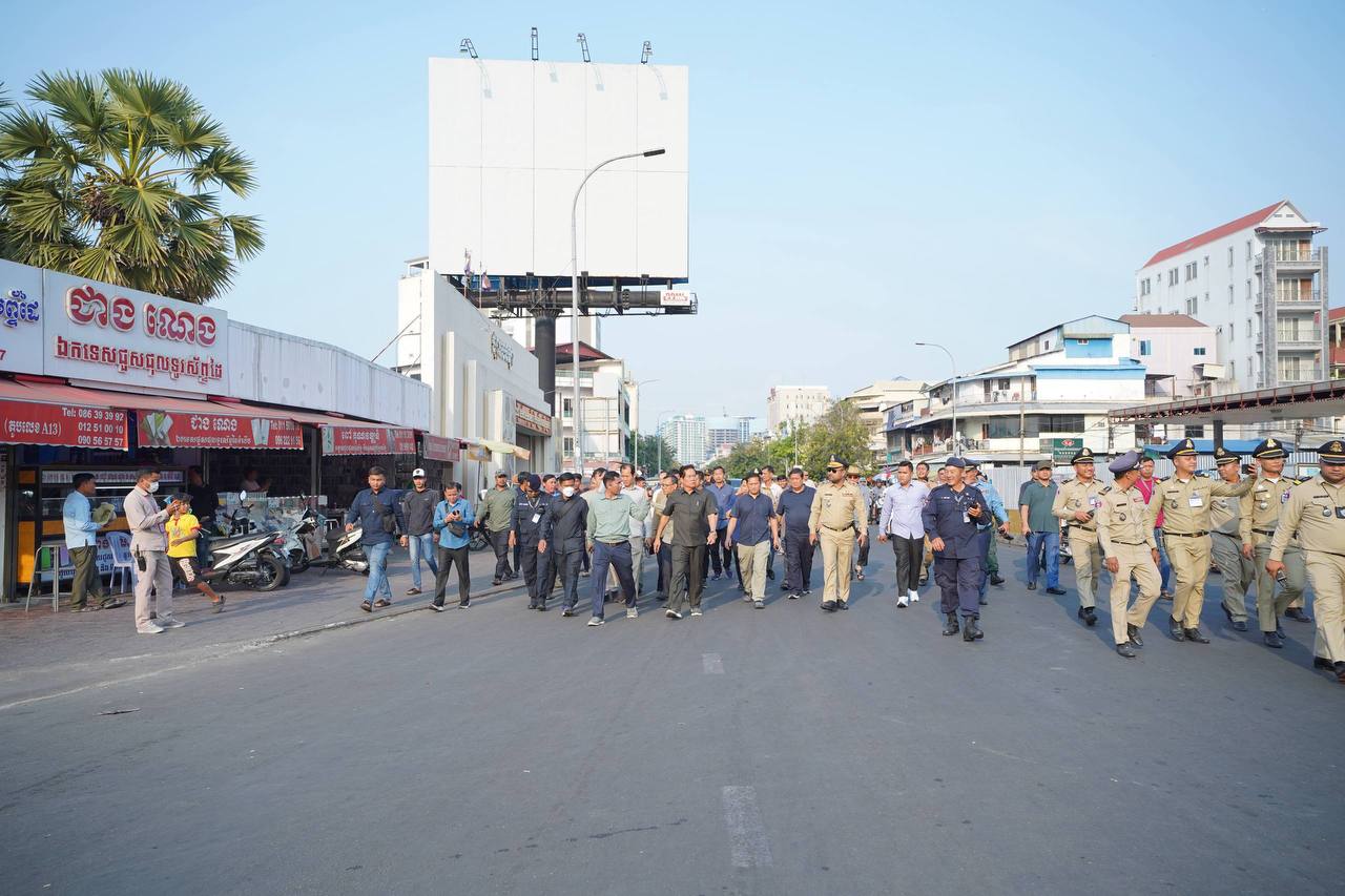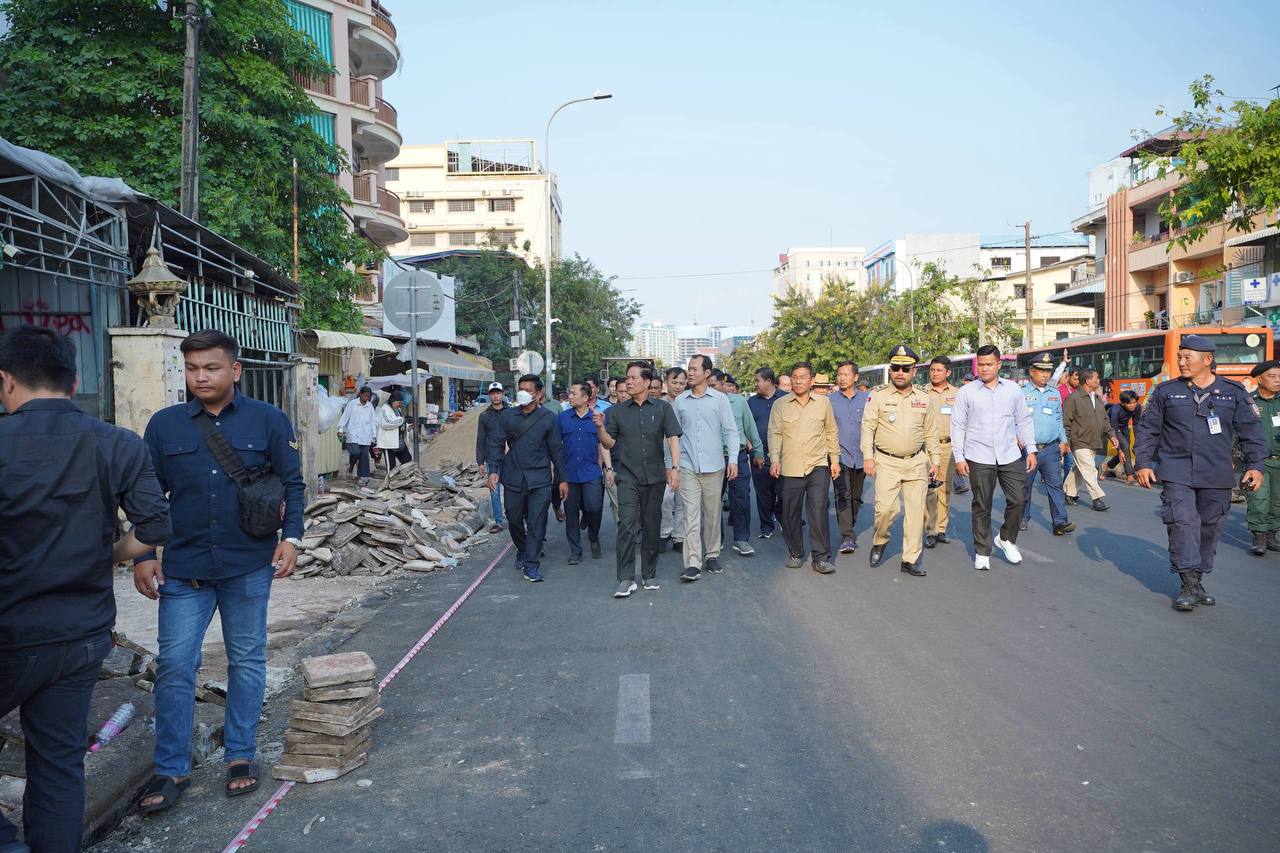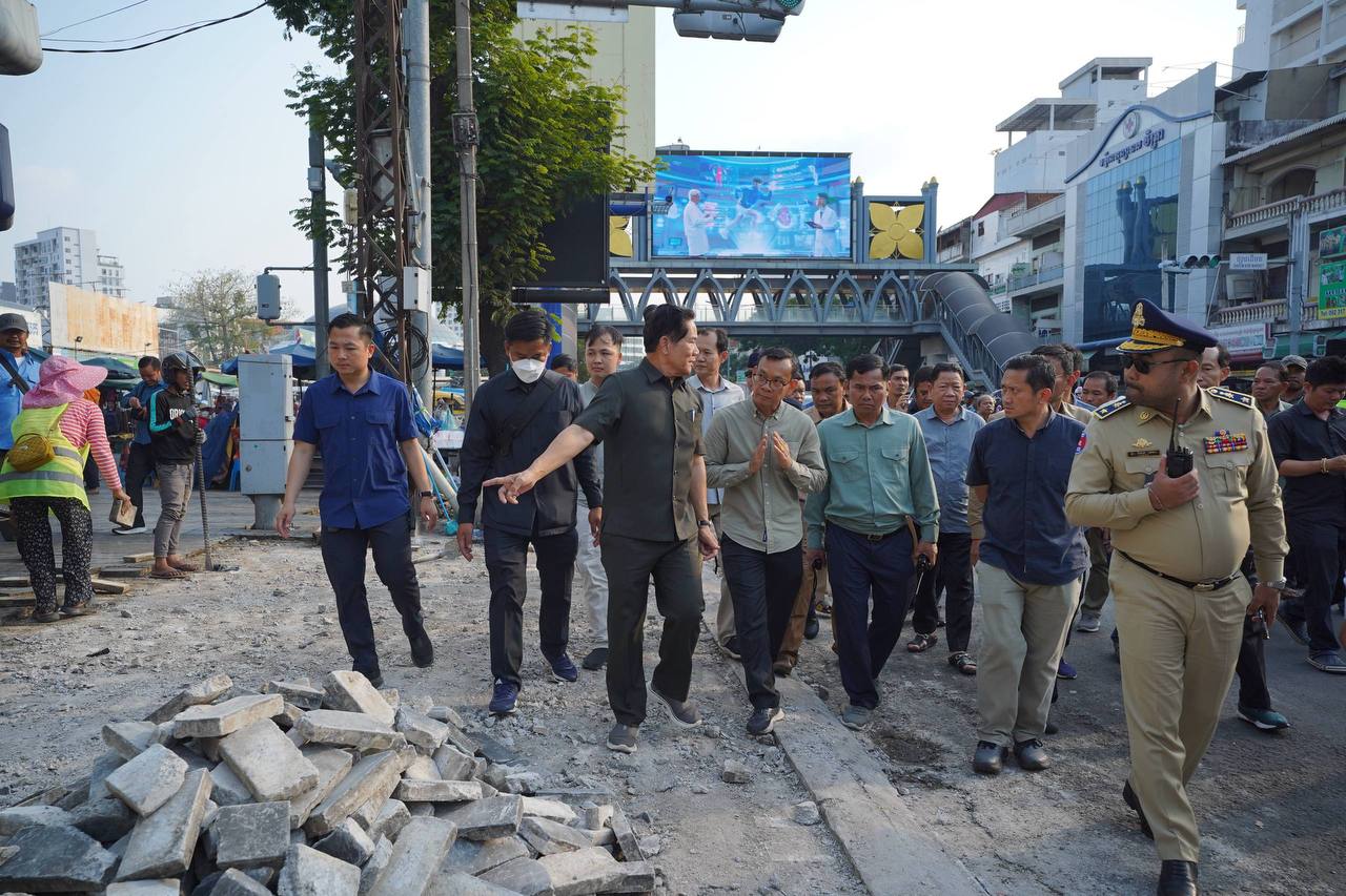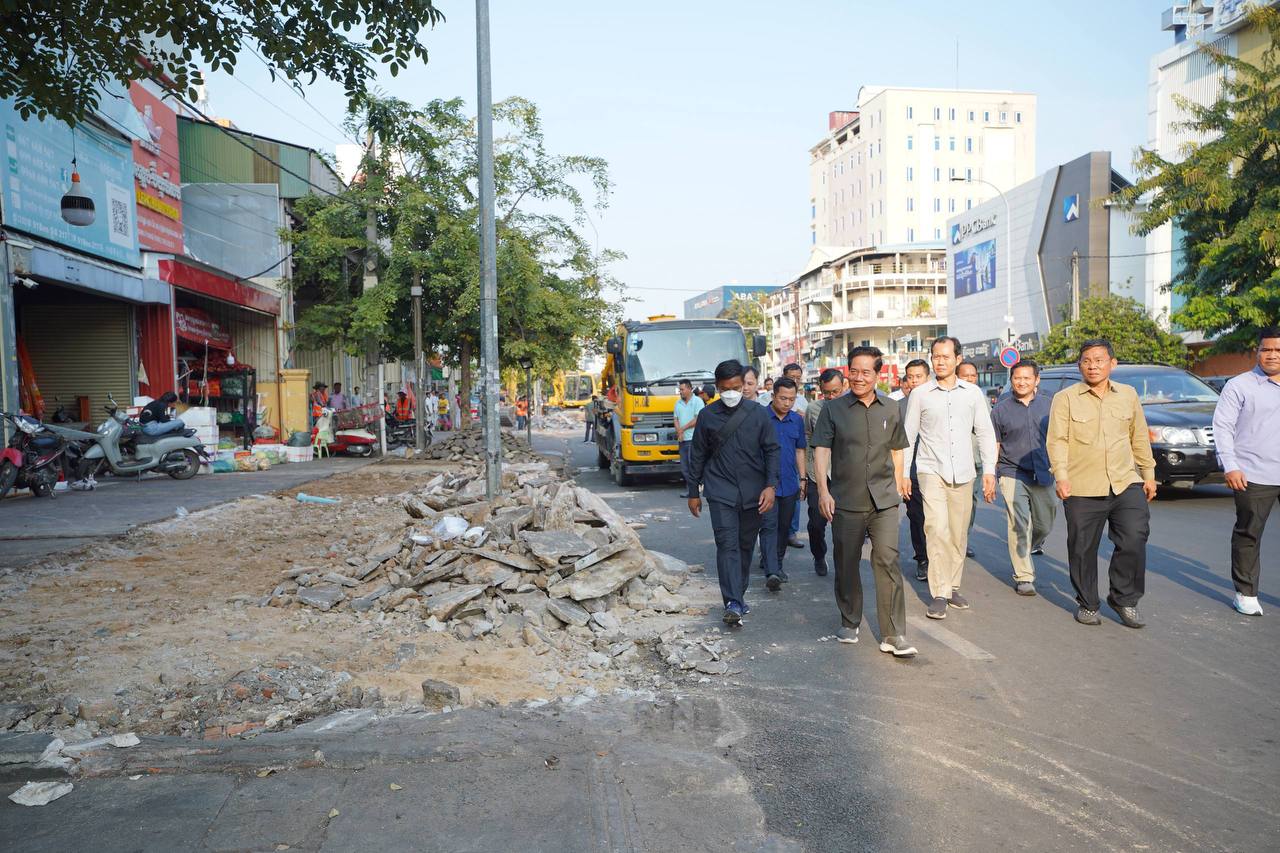 (ភ្នំពេញ)៖ នៅរសៀលថ្ងៃទី១៨ ខែមករា ឆ្នាំ២០២៦នេះ លោក លោក ឃួង ស្រេង អភិបាលរាជធានីភ្នំពេញ បានដឹកនាំក្រុមការងាររដ្ឋបាលរាជធានីភ្នំពេញ ចុះពិនិត្យសកម្មភាពអនុវត្តគម្រោងរៀបចំកែលម្អចិញ្ចេីមផ្លូវ តាមបណ្ដោយមហាវិថីម៉ៅសេទុង មហាវិថីព្រះមុន្នីរ៉េត ផ្លូវ២៣០ និងតំបន់ជុំវិញពាក់ព័ន្ធ ដើម្បីកែលម្អហេដ្ឋារចនាសម្ព័ន្ធជុំវិញនោះ សម្រាប់បម្រេីប្រយោជន៍សាធារណៈជារួម។