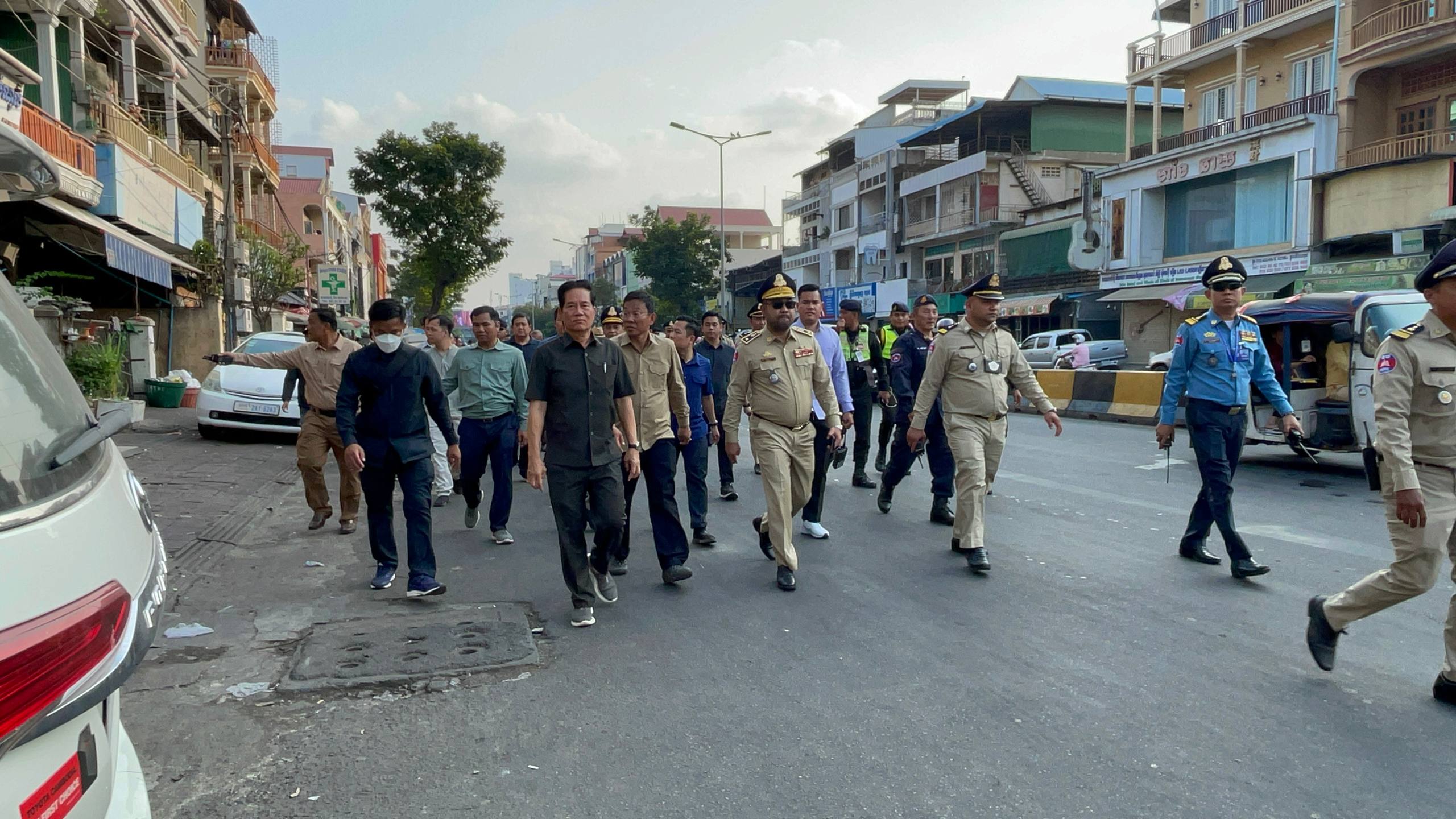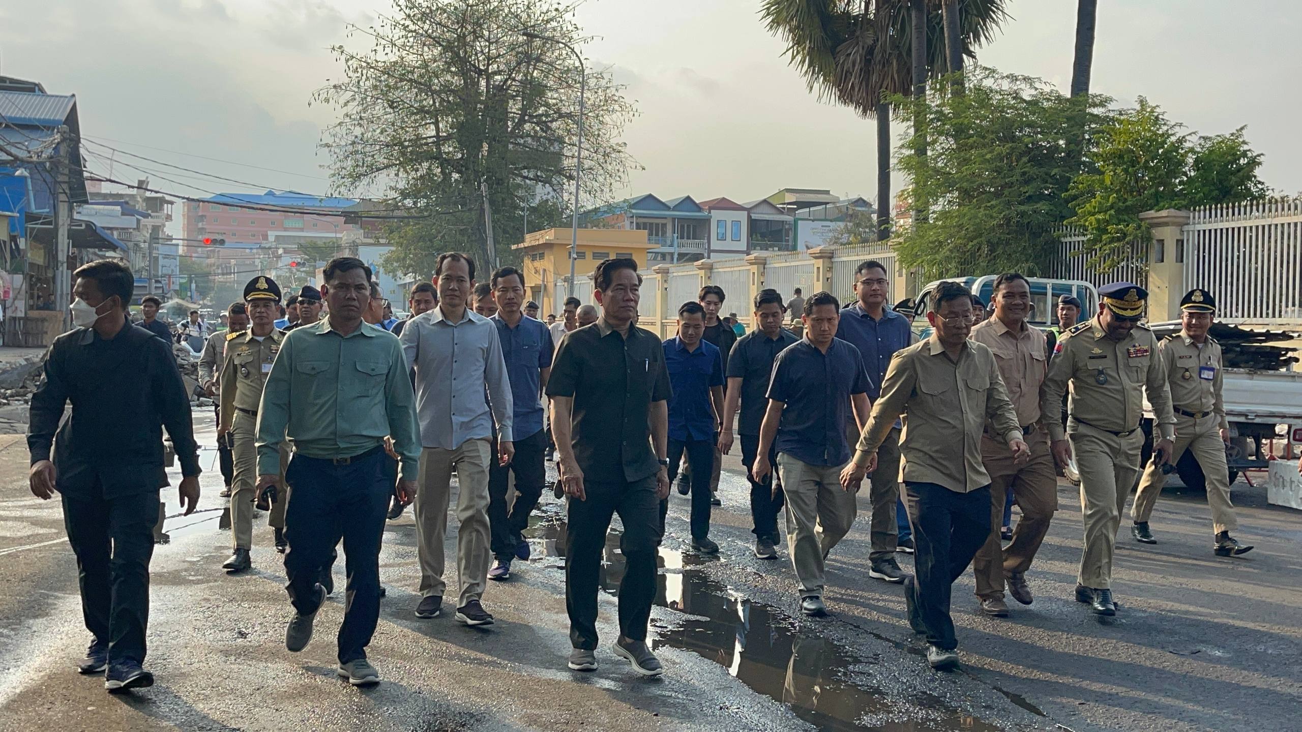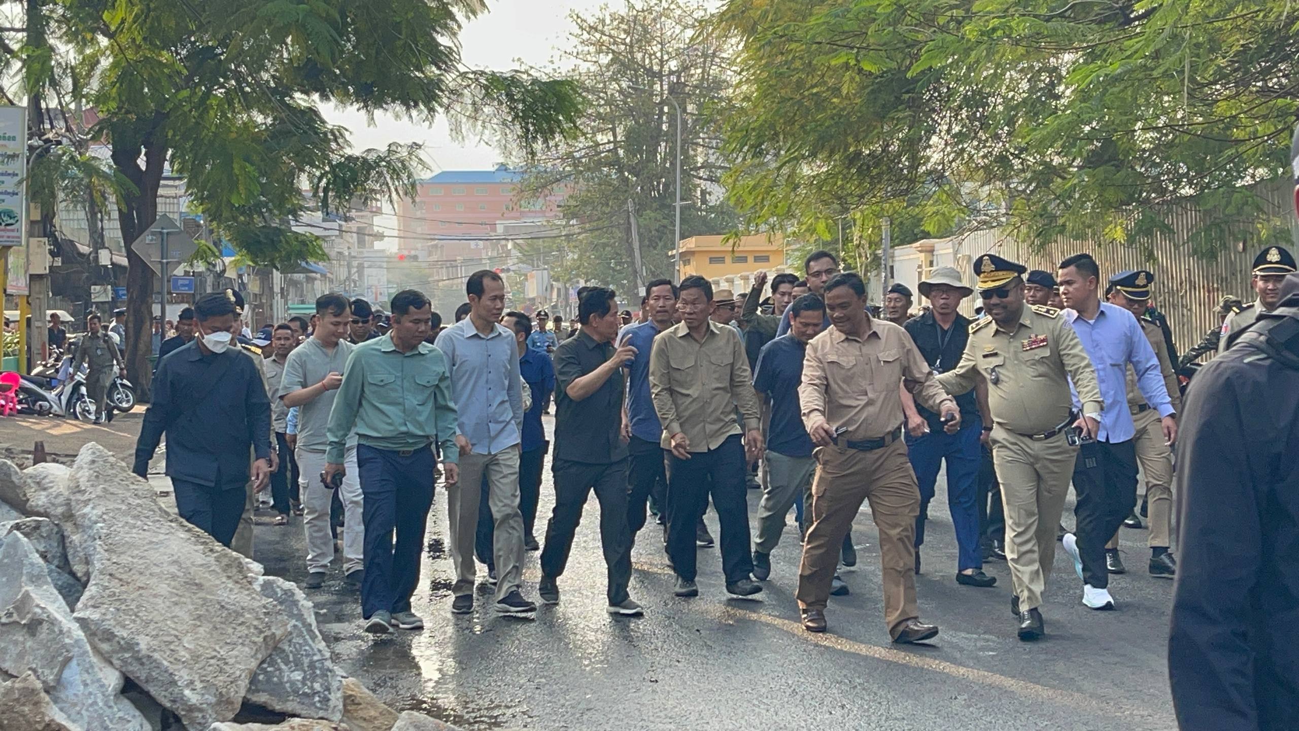 (ភ្នំពេញ)៖ នៅរសៀលថ្ងៃទី១៨ ខែមករា ឆ្នាំ២០២៦នេះ លោក លោក ឃួង ស្រេង អភិបាលរាជធានីភ្នំពេញ បានដឹកនាំក្រុមការងាររដ្ឋបាលរាជធានីភ្នំពេញ ចុះពិនិត្យសកម្មភាពអនុវត្តគម្រោងរៀបចំកែលម្អចិញ្ចេីមផ្លូវ តាមបណ្ដោយមហាវិថីម៉ៅសេទុង មហាវិថីព្រះមុន្នីរ៉េត ផ្លូវ២៣០ និងតំបន់ជុំវិញពាក់ព័ន្ធ ដើម្បីកែលម្អហេដ្ឋារចនាសម្ព័ន្ធជុំវិញនោះ សម្រាប់បម្រេីប្រយោជន៍សាធារណៈជារួម។